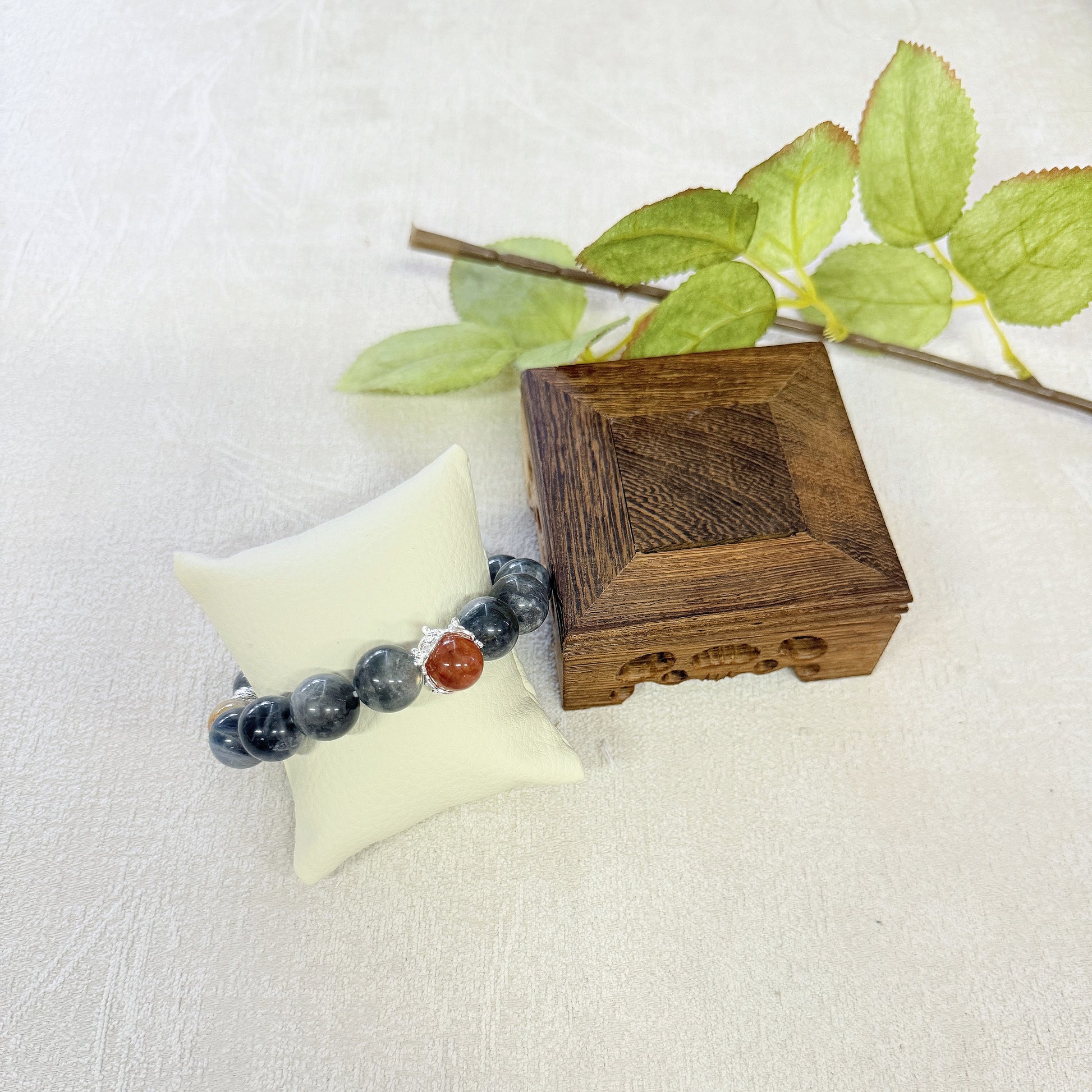 This bracelet is crafted from natural labradorite beads, known for their unique play of blue-green light, often referred to as the “Stone of Magic.” Labradorite is believed to enhance intuition, insight, and protection while shielding against negative energy and boosting focus and confidence.