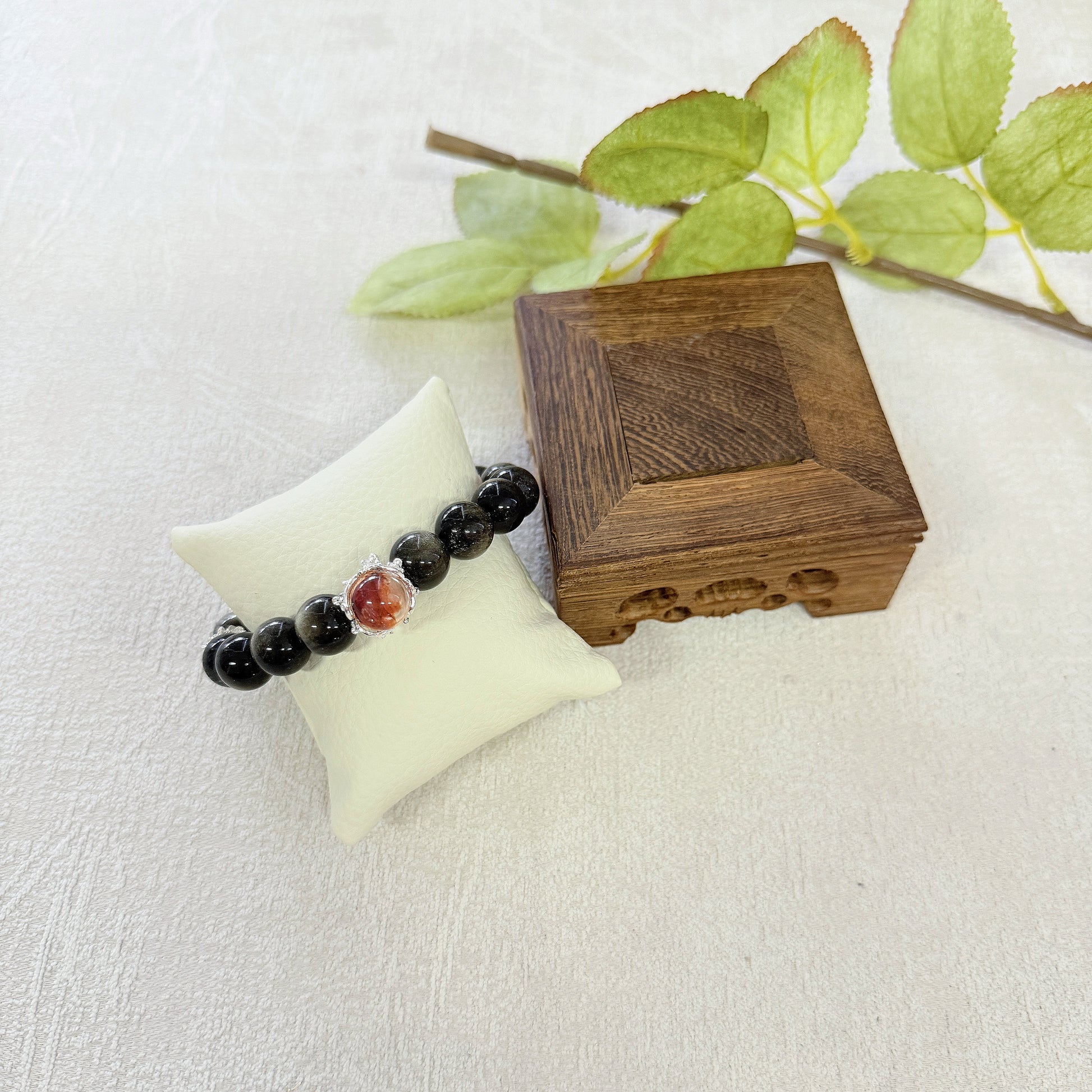 This bracelet features sleek, polished Obsidian beads, exuding a deep, steady aura complemented by vintage silver accents and natural gemstone details. Obsidian has long been known as a powerful protective stone, believed to shield against negativity and provide grounding and stability.