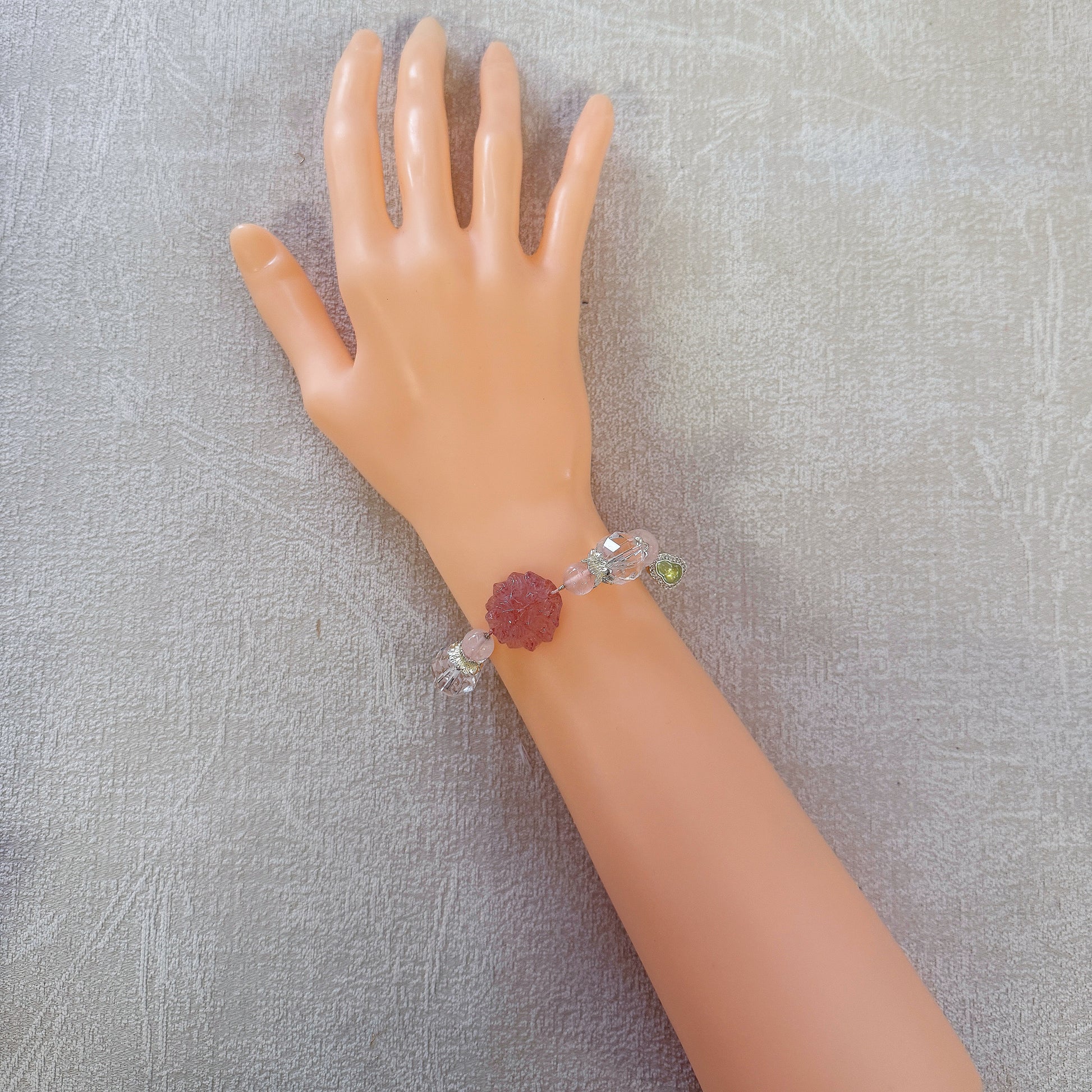 The design is enhanced with a delicate gourd-shaped pendant, an auspicious symbol in traditional culture representing blessings, health, and longevity. Paired with the gentle energy of rose quartz, it makes the bracelet not only elegant in appearance but also meaningful in spirit.